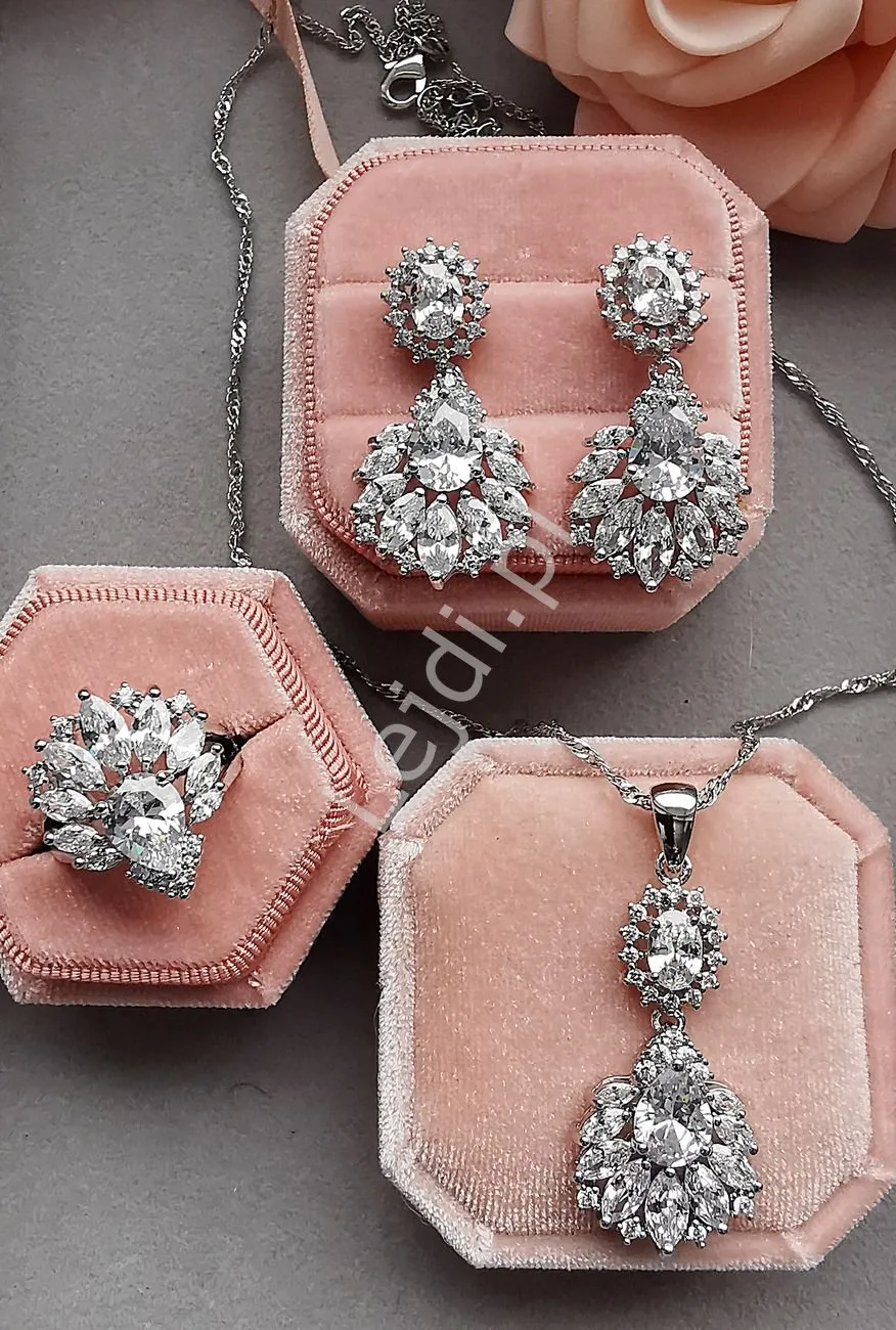 Luksusowy kryształkowy zestaw biżuterii ślubnej