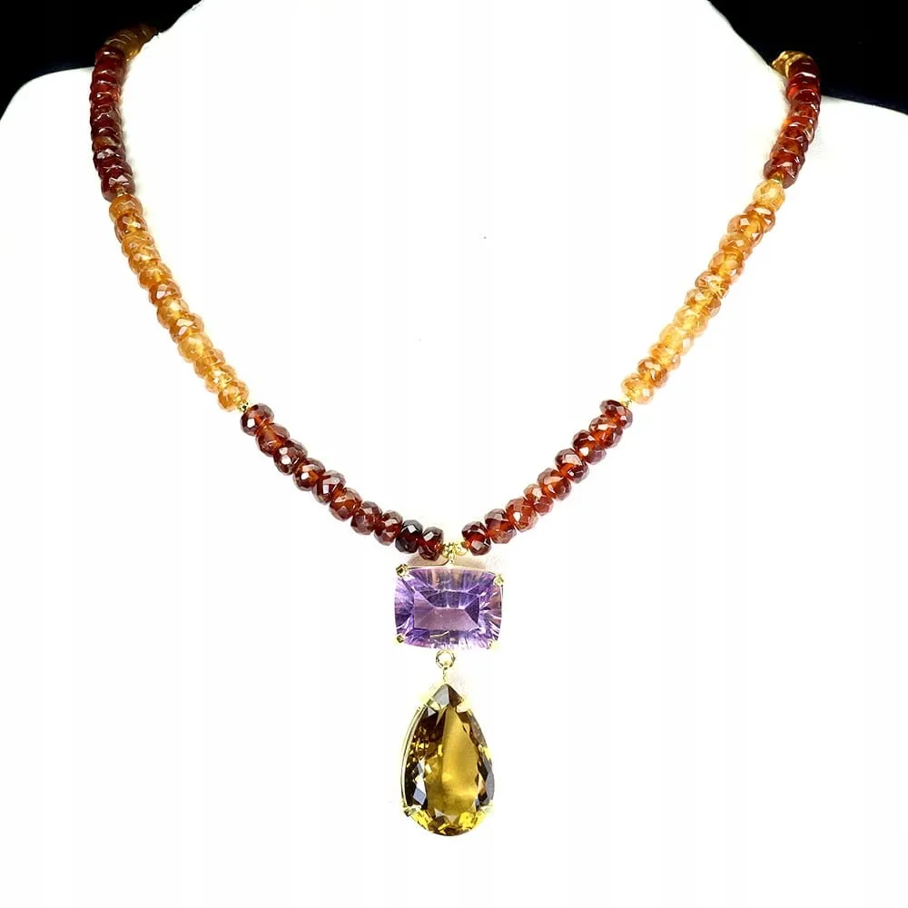 Piękny naszyjnik zjawiskowy naturalny ametyst cytryn hessonity srebro 925