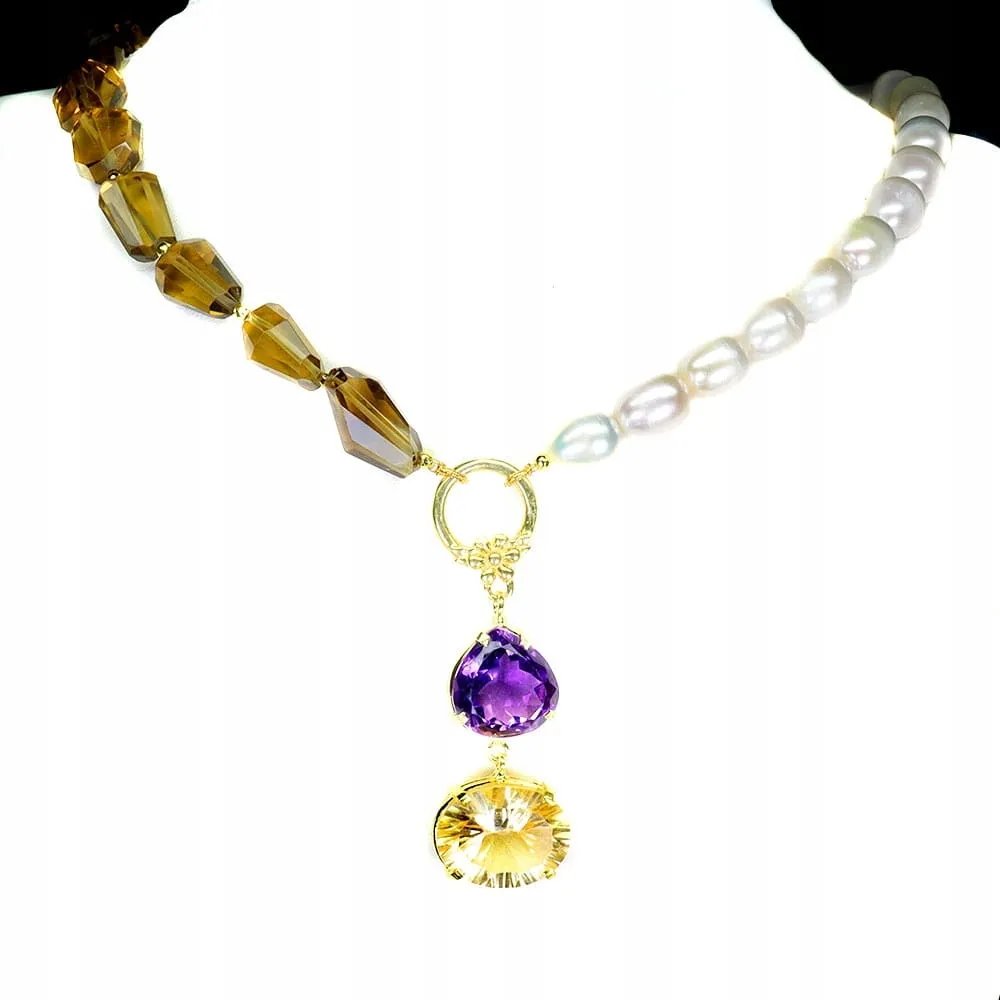 925 Naszyjnik zjawiskowy naturalne perły cytryny ametyst 1
