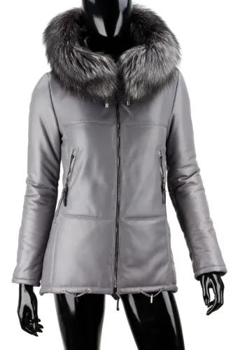 ADLA102 - szara parka skórzana damska ocieplana z kapturem DORJAN