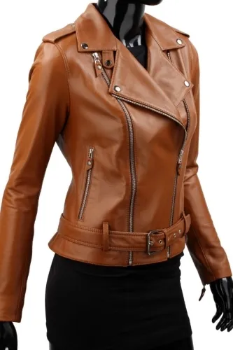 JUD088 - Ramoneska skórzana damska z camelowej skóry DORJAN