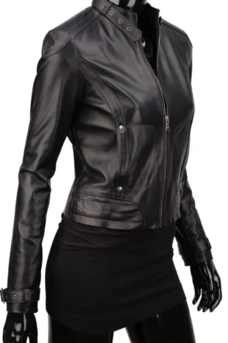 EWA450 - Czarna kurtka damska biker z naturalnej skóry owczej DORJAN