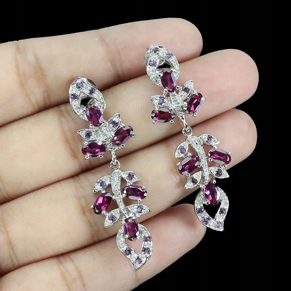 Eleganckie srebrne wiszące kolczyki granaty rodolity naturalne 925 3