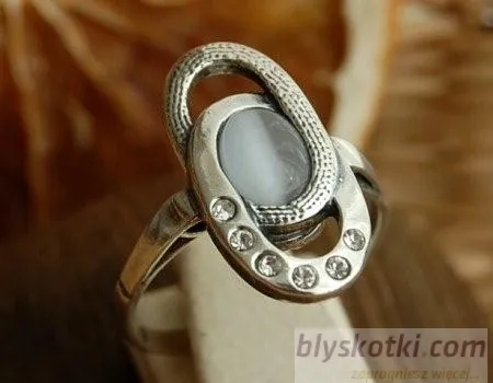 VESPA - srebrny pierścionek z kocim okiem i kryształkami