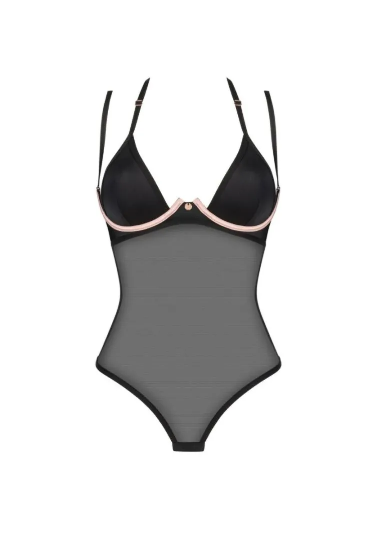 Bielizna w zjawiskowym fasonie sprawi, że on oszaleje z zachwytu! Chcesz zobaczyć to w jego spojrzeniu? Załóż obłędne body Alluria! Seksowna koronka o zjawiskowym kroju będzie jedną z Twoich ulubionych kreacji. Pozwól mu pociągnąć wstążeczkę na Twoich plecach. Tak zacznie się Wasza pikantna zabawa! Poznaj Allurię bliżej: – koronkowe body w zjawiskowym fasonie – kwiatowy motyw dodaje kobiecego uroku – regulowane szelki – łatwe dopasowanie – miseczki usztywniane fiszbinami – podkreślony, pięknie wyeksponowany biust! – seksowne wycięcie pod biustem – trójkątny krój wysmukla talię – powabnie odsłonięte bioderka i część brzuszka – częściowo odkryte plecy – kokieteryjne wiązanie z tyłu – idealna regulacja – dół body stanowią połączone z górą, koronkowe stringi – kuszący wygląd pośladków! – przyjemny w dotyku, rozciągliwy materiał (90% poliamid, 10% elastan)