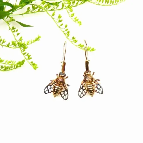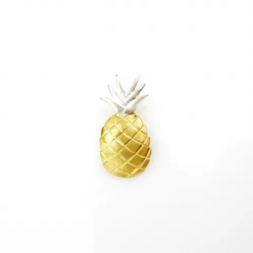 Urocze i subtelne kolczyki w kształcie malutkich ananasów. Całkowita długość kolczyków 1,5 cm. Kolczyki wykonane ze srebra, następnie pozłocone.