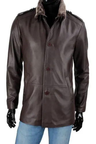 BILK123 - Płaszcz skórzany męski z brązowej skóry naturalnej DORJAN
