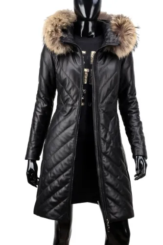 ANGK450 - płaszcz skórzany pikowany damski do połowy uda DORJAN