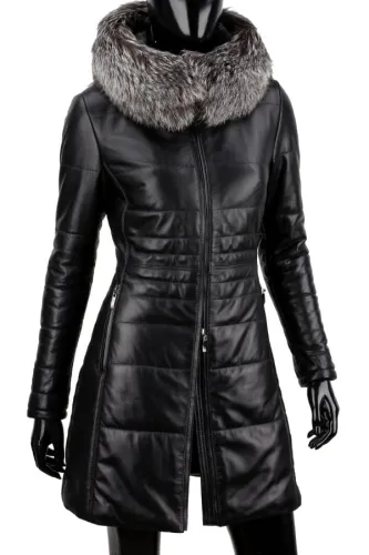 ANG450_5 - płaszcz skórzany ocieplany damski z szerokim futerkiem DORJAN