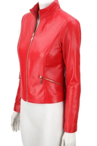 1 749,00 złANI412 – czerwona damska kurtka skórzana w typie ramoneski DORJAN