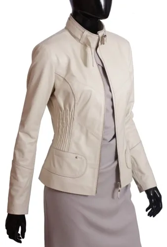 IZL076 - uniwersalna kurtka skórzana damska w kolorze ecru DORJAN