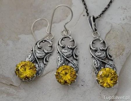 Srebrny zestaw w składzie kolczyki i wisiorek, symboliką nawiązujący do okresu secesji, w którego srebrne motywy roślinne zakuty został okrągły granat. Cała kompozycja sprawi że poczujesz się piękniejsza. Średnica kamienia to 10mm SREBRO OKSYDOWANE. Szerokość elementu to 11mm. Długość z zawieszką to 4cm. SREBRO PRÓBY 925. Kupując w komplecie oszczędzasz!