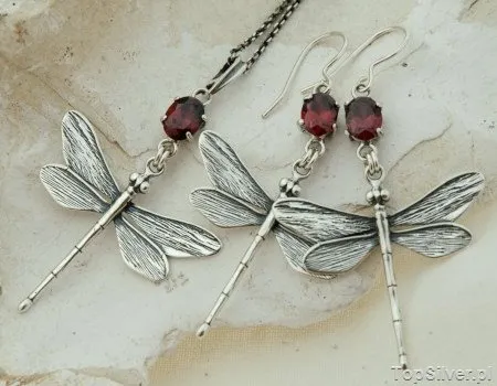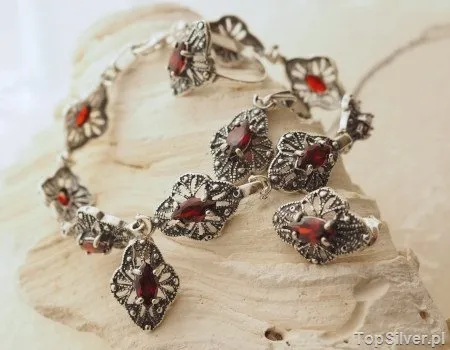 CESARTA - srebrny komplet z rubinem i perłami