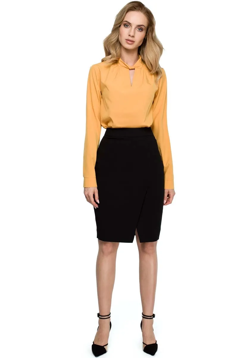 Błękitna asymetryczna kopertowa spódnica z wiązaniem będzie idealnym uzupełnieniem wiosennych strojów. Oryginalnego charakteru nadaje spódnicy asymetryczny dół, który częściowo odsłania nogi. Swój elegancki wygląd spódnica zawdzięcza kopertowemu fasonowi oraz wiązanemu paskowi. Idealny wybór dla kobiet, które cenią wygodę, ale również podążają za trendami. Świetnie wygląda zarówno w stylizacjach casuaowych, jak i w eleganckich. Stawiając na szpilki, uzyskasz szykowny look, a zestawiając ją z płaskimi butami, gładkim t-shirtem , czy ramoneską stworzysz nietuzinkowy, luźny outfit. Materiał: poliester 100%