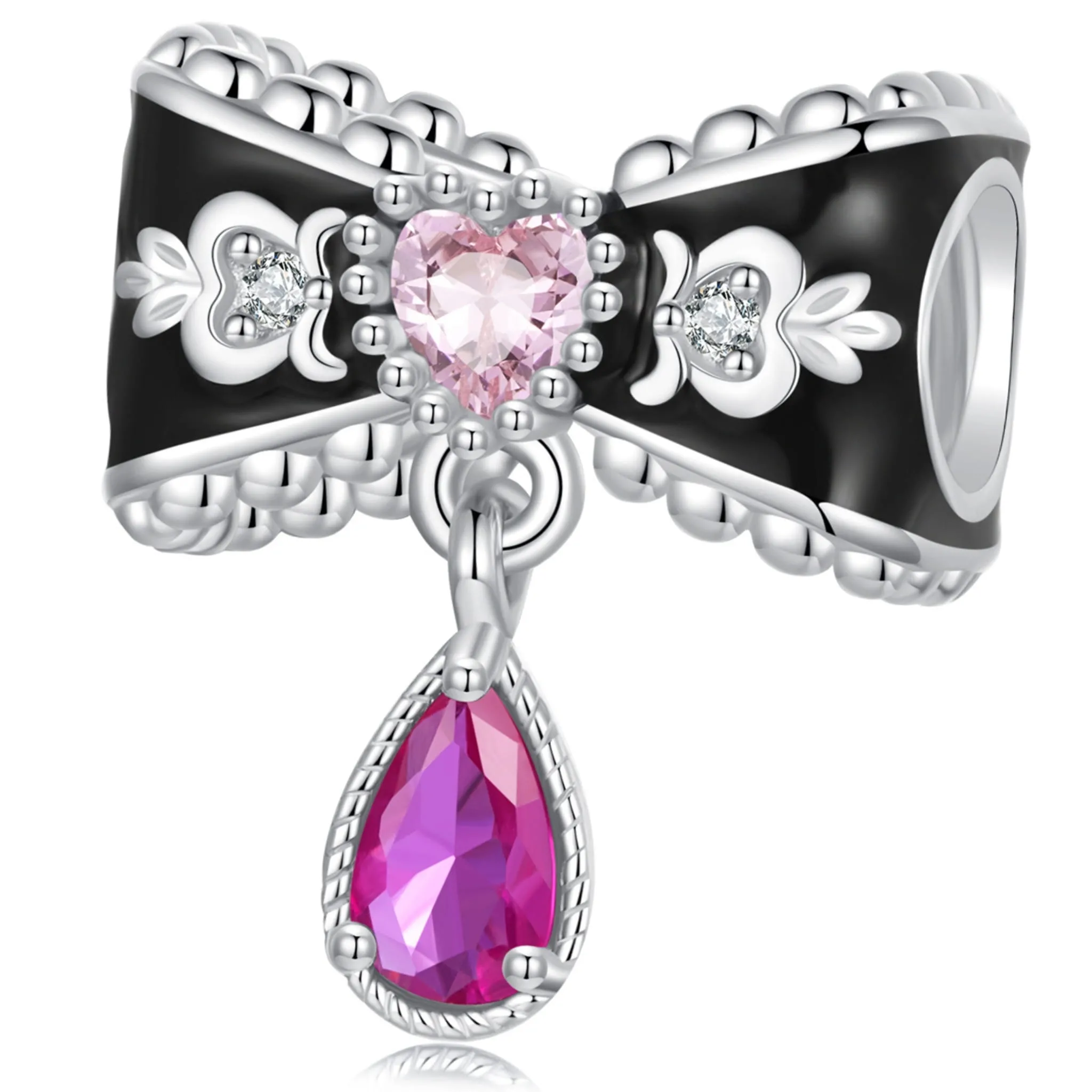 Uroczy charms kokardka z wiszącym kryształkiem koralik srebro 925 beads