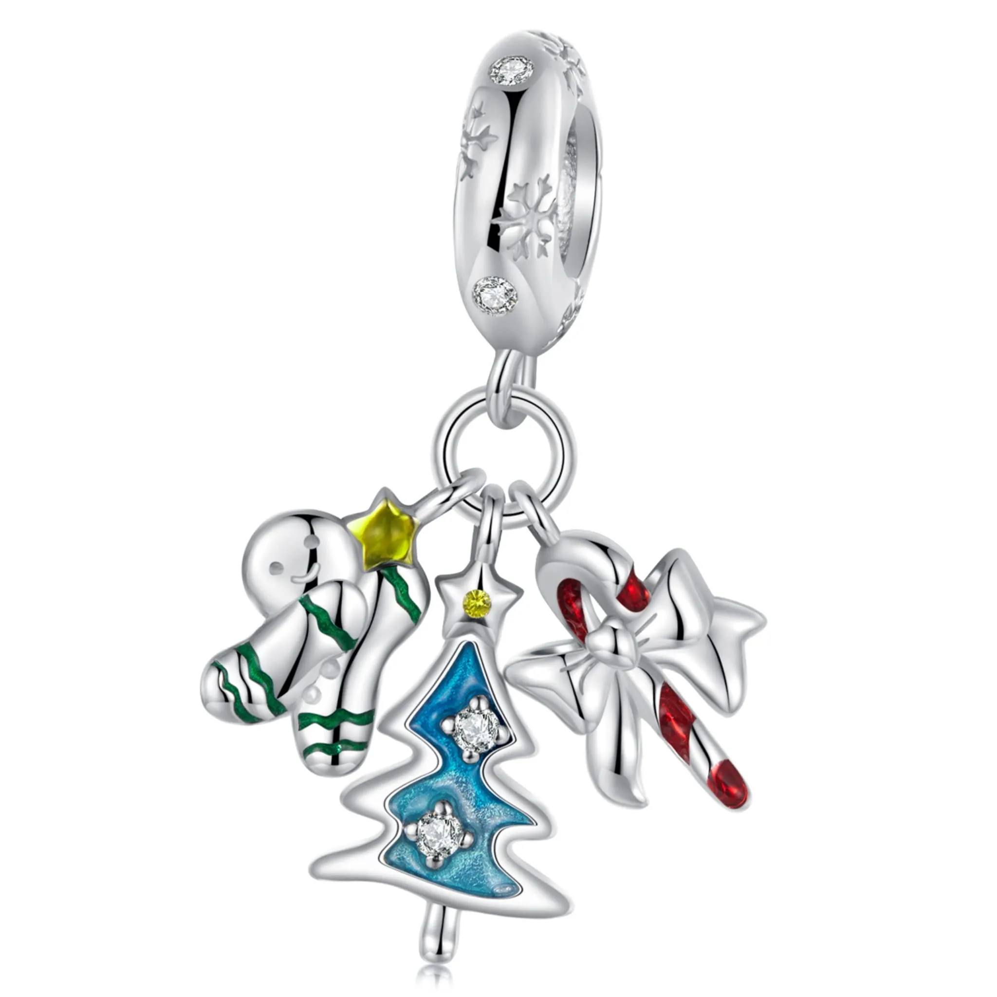 Zawieszka ze srebra choinka, piernik i laska cukrowa beads koralik