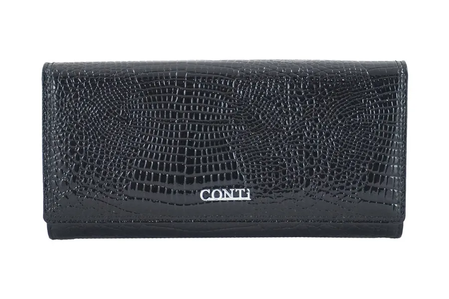 Klasyczny skórzany portfel damski CROCO - Czarny