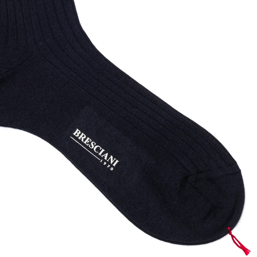 Granatowe skarpetki Bresciani w kolorowe kaczki. Skarpetki Bresciani są wyprodukowane z doskonałej egipskiej bawełny Mako. Bawełna taka jest lekka i idealna od wiosny do jesieni i dla osób, które nie lubią przegrzewać stóp. Część palcowa ze stopą są ręcznie łączone aby idealnie pasowały do stopy i wyjątkowo komfortowo się nosiły. Skarpetki są wykonane w 100% z egipskiej bawełny Mako. Przy wyborze rozmiaru rekomendujemy wybrać skarpetki o 1 rozmiar mniejsze ponieważ skarpetki nie zawierają elastycznych włókien.