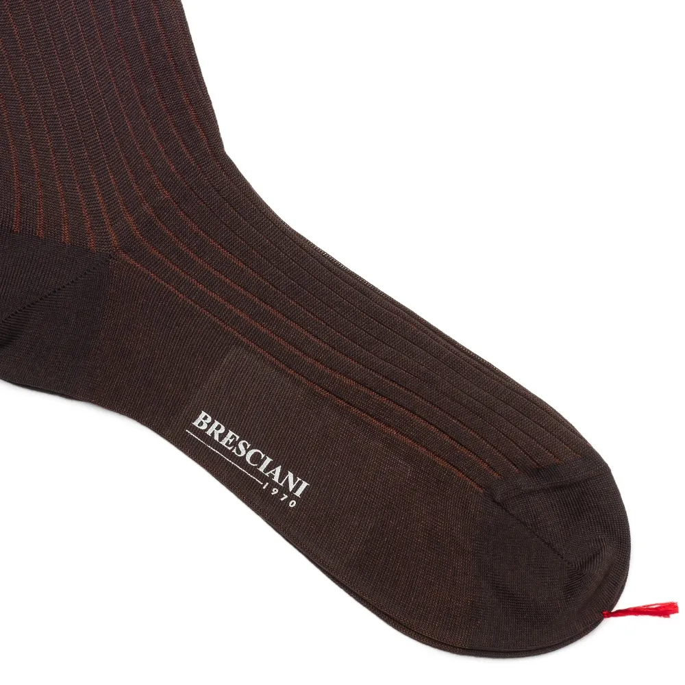 Granatowe skarpetki Bresciani w jodełkę. Skarpety Bresciani są wykonane z najlepszej dostępnej egipskiej bawełny Mako. Część palcowa ze stopą są ręcznie łączone aby idealnie pasowały do stopy i wyjątkowo komfortowo się nosiły. Szczegóły dotyczące rozmiarów są w zakładce „Dopasowanie i wymiary” Bawełna 100% Made in Italy