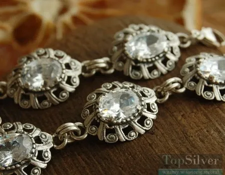 Delikatna, srebrna bransoletka, w której secesyjne ramki zakuto fasetowne rubiny(synt). Biżuteria wprawi w zachwyt każdą miłoniczkę piękna. Sama się przekonaj Wymiar pojedyńczego ogniwa bransoletki to 1,3 x 1,4 cm Długość z zapięciem to 18cm Srebro próby 925 Waga kamienia to 1ct W naszej ofercie do kompletu znajdziesz także kolczyki, wisiorek oraz pieścionek. Kupując w komplecie oszczędzasz!