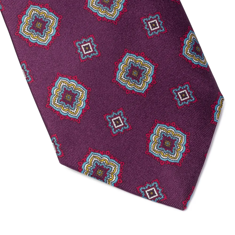 Ciemna fuksja krawat jedwabny wzór rozeta VAN THORN