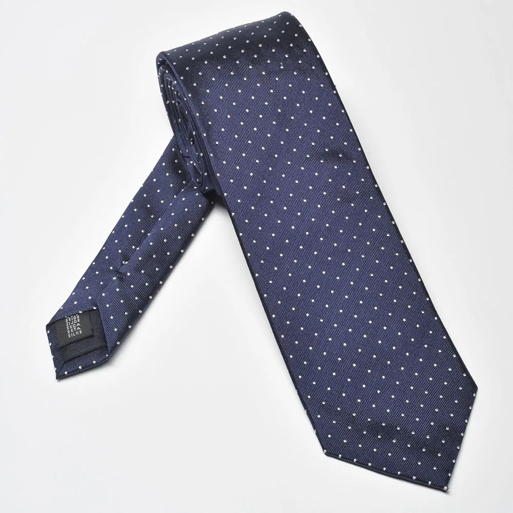 Granatowy krawat jedwabny w białe kropki Profuomo