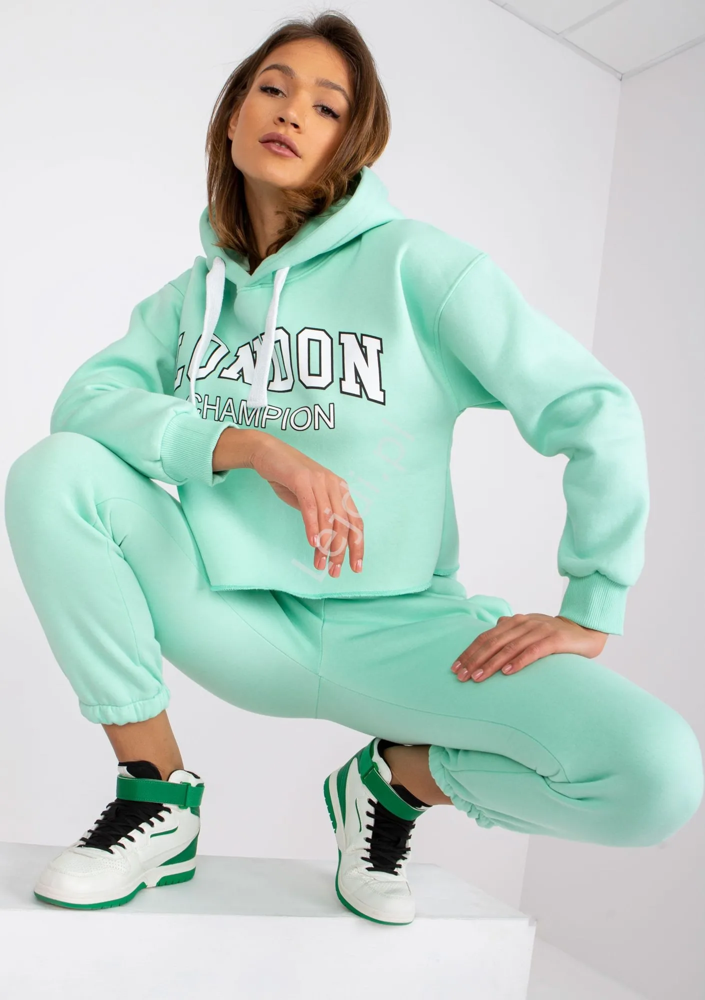 Miętowy komplet dresowy z białymi napisami LONDON Champion , miętowe dresy damskie 720.01