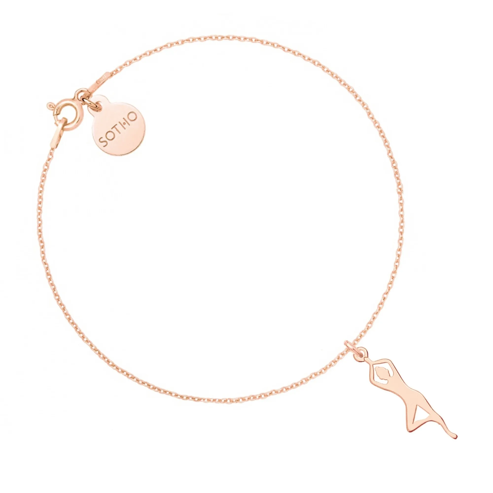 Bransoletka z joginką w pozycji drzewa z różowego złota