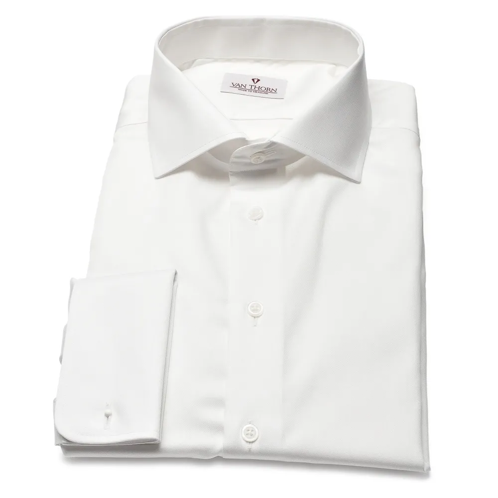 Biała koszula męska VAN THORN z włoskim kołnierzykiem. Koszula jest uszyta z bawełny pochodzącej z austriackiej tkalni Getzner. Koszula ma włoski kołnierzyk i mankiety na spinki. Tkanina: Bawełna 100% Dopasowanie: SLIM FIT W koszuli VAN THORN można modyfikować wymiary ponieważ koszule VAN THORN są szyte na zamówienie. Koszulę VAN THORN można zamówić z monogramem. Inicjały i kolor monogramu proszę podać w uwagach do zamówienia. Monogram haftujemy na lewym mankiecie. Jeśli chcieliby Państwo wprowadzić zmiany w koszuli, np. mankiety na spinki lub kieszonkę to jest to możliwe – prosimy o informację w uwagach do zamówienia.