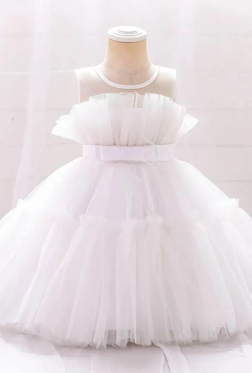 Biała sukienka dla dziewczynki z miękkiego tiulu 2099