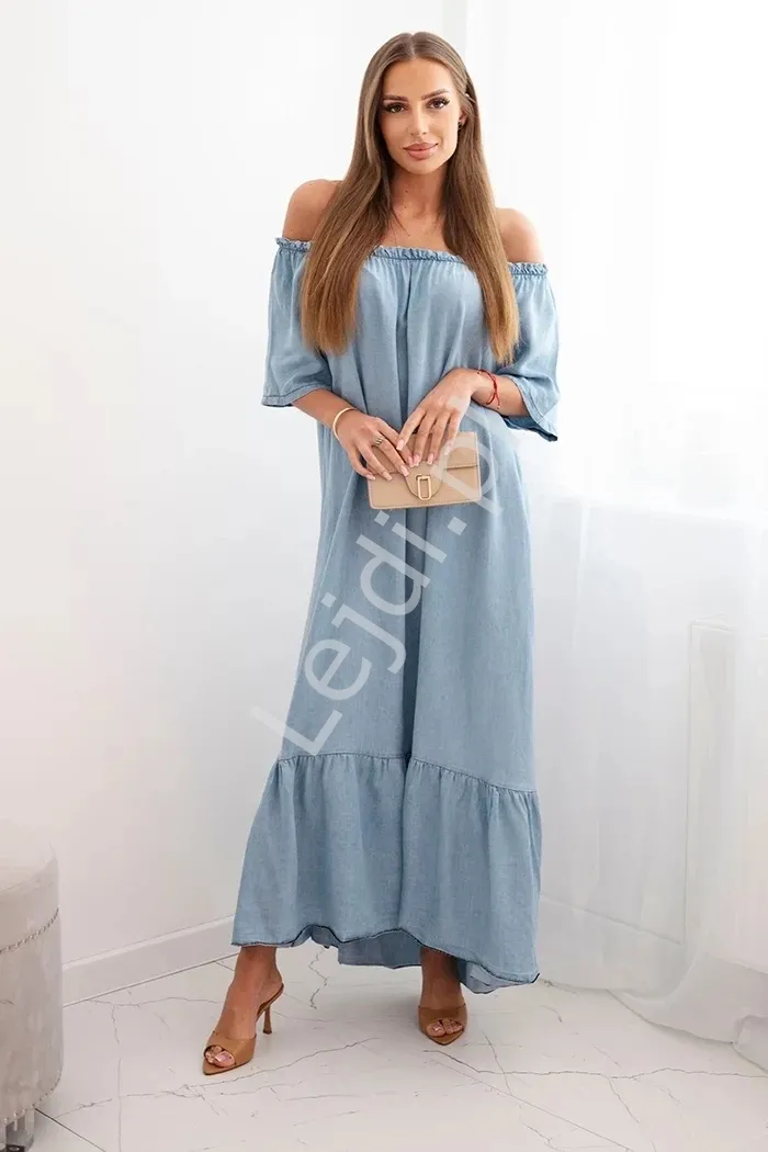 Jeansowa długa sukienka hiszpanka Plus Size z krótkim rękawkiem oversize 21694