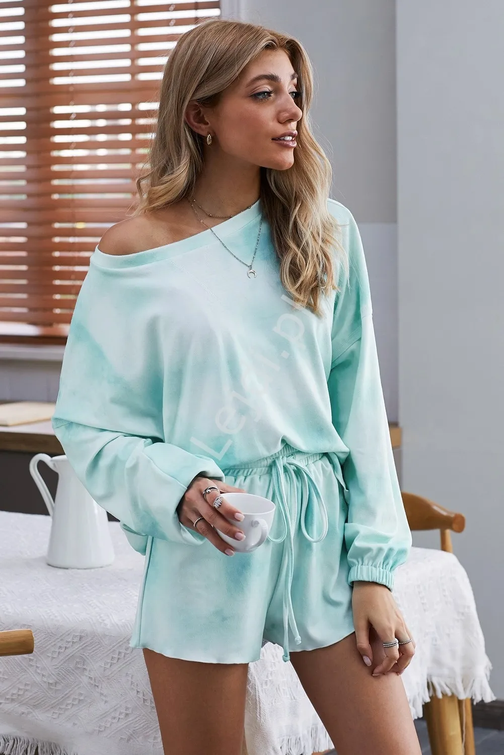 Ciepła kurtka alpaka w kolorze niebieskim z białym napisem Candies