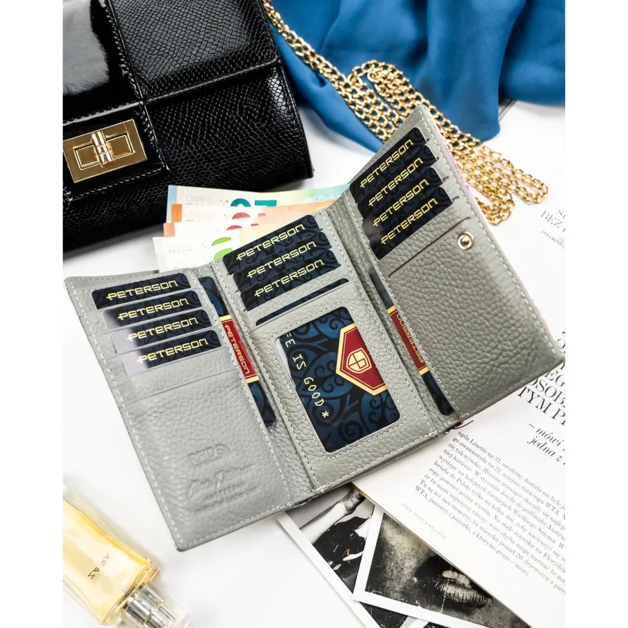 Wielokolorowy portfel damski ze skóry ekologicznej i naturalnej zamykany na bigiel i zatrzask PTN PX23-1-NPK Peterson