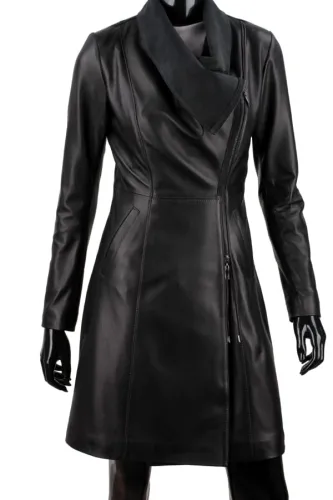 ESTZ450 - płaszcz skórzany damski z asymetrycznym zapięciem DORJAN
