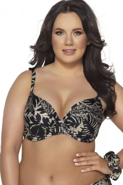 Klasyczny biustonosz kąpielowy- florystyczny print- miseczki z fiszbinami, lekko usztywniane- ramiączka z regulacją, nieodpinane- metalowe zapięcie na plecach- idealny komplet z figami SF 184/12 Skład: 80% poliamid, 20% elastan…