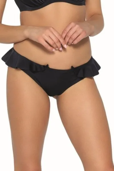 Klasyka wzbogacona odrobiną dziewczęcej fantazji – tak śmiało można określić model SK 213. Miękki biustonosz kąpielowy z delikatnym marszczeniem w dolnej misce pięknie podkreśla krągłość subtelnie zebranych i uniesionych piersi. Urokliwa, zwiewna falbanka okalająca dekolt odciąża sylwetkę, dodając jej powabu i lekkości, a złote kółka, regulatory i fantazyjne zapięcie w kształcie muszli rozjaśniają czarną całość. …