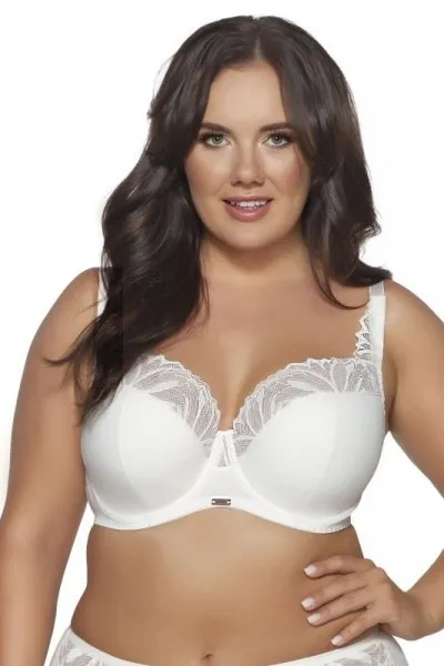 Biustonosz typu soft, na fiszbinach- dla Pań z większym biustem- miseczki z koronki i tiulowej siateczki w kolorze liliowym- górna linia wykończona lamówką- od wewnątrz podszyte dodatkowo warstwą siateczki- idealnie podtrzymuje biust- ramiączka nieodpinane, regulowane- obwód ze stabilnej dzianiny, bez bocznej fiszbiny- zapięcie na dwie lub trzy haftki z trzystopniową regulacją- konstrukcja K-1396 Skład: 88% poliamid, 8% bawełna, 4% elastan…