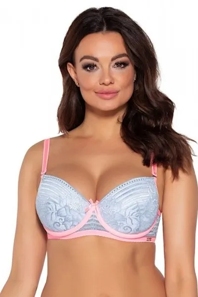 Biustonosz z miękkimi miseczkami typu top. Tył stanowi efektowna czarna koronka. Część miseczek także z koronki. Bez zapięcia i regulacji ramiączek.Materiał: 80% poliamid, 20% elastan…