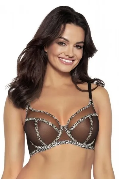 Biustonosz typu semi soft, na fiszbinach- miseczki w dolnej części usztywnione cienką pianką – górna zakończona siateczką- łączenie fiszbin zdobione kokardką – unosi i eksponuje biust- ramiączka nieodpinane, regulowane- obwód z boczną fiszbiną- zapinany na dwie lub trzy haftki z trzystopniową regulacją- konstrukcja SS 10 Skład: 57% poliamid, 10% poliester, 18% bawełna, 10% elastan, 5% poliuretan…