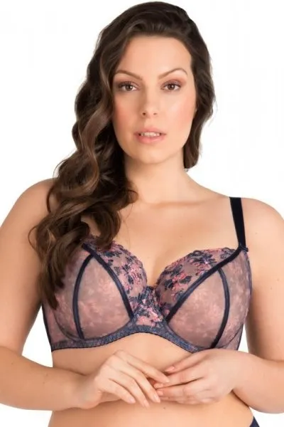 Biustonosz full cup- miseczki z koronki, podszyte bawełną- boczki koronkowe- ozdobne ramiączka, nieodpinane Skład: 44% poliamid, 18% poliester, 16% bawełna, 16% poliuretan, 6% elastan…