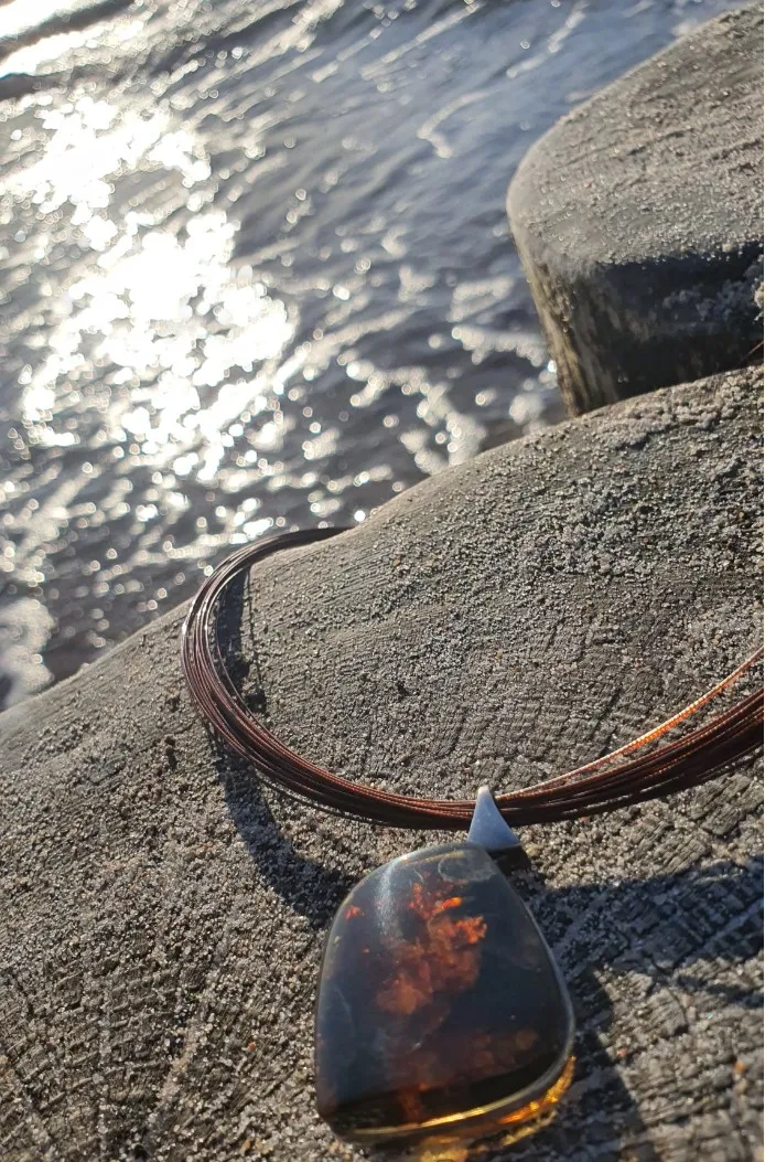 Naszyjnik srebrny z naturalnym bursztynem unikat