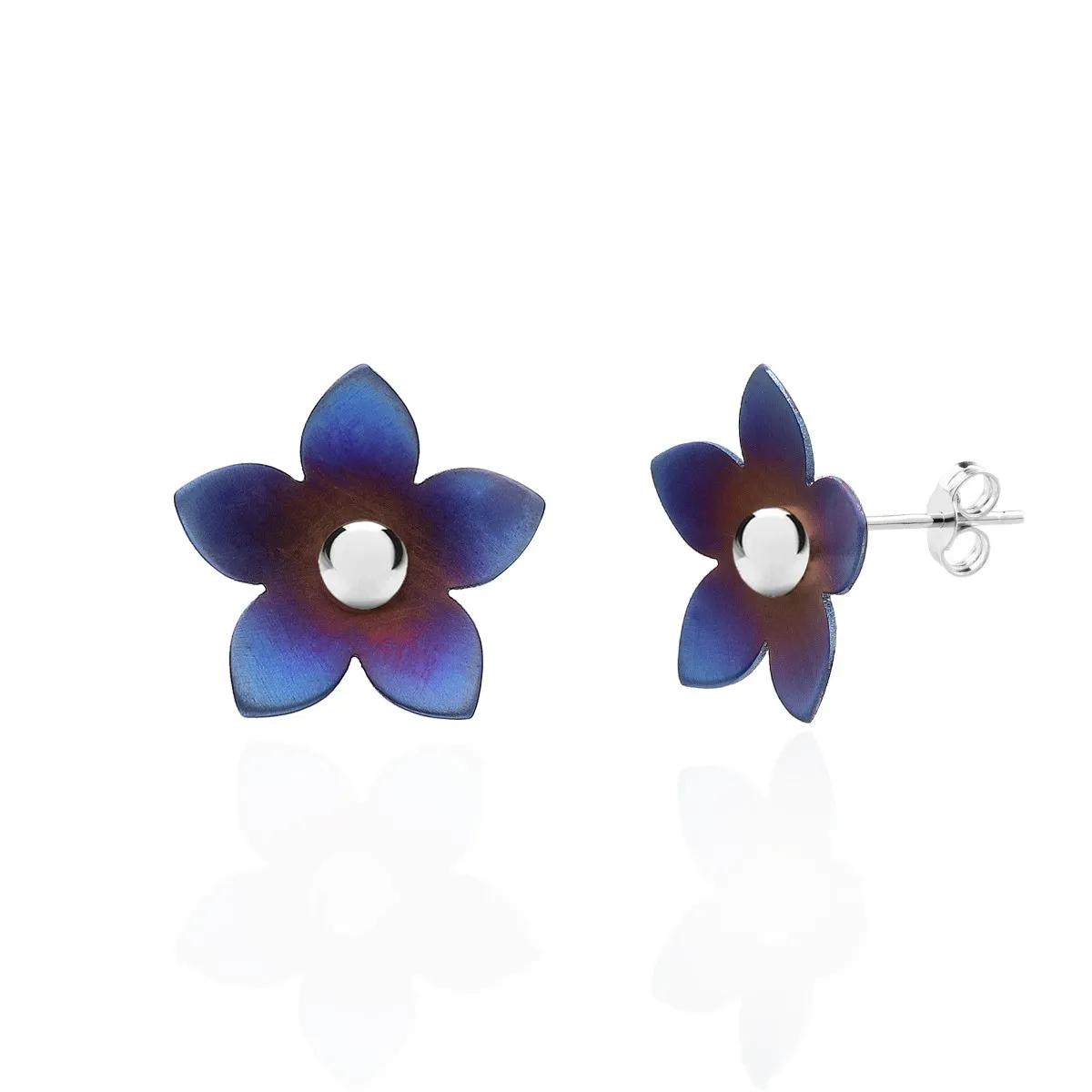 Biżuteria damska kolczyki srebrne z tytanem kwiatki