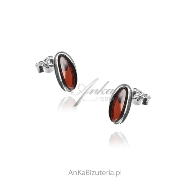 Subtelne i eleganckie kolczyki srebrne z wiśniowym bursztynem