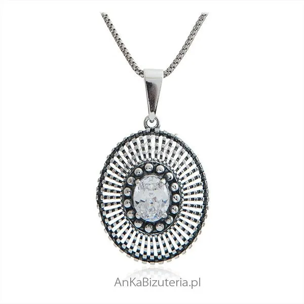 Zawieszka srebrna z cyrkonią - ażurowa zawieszka