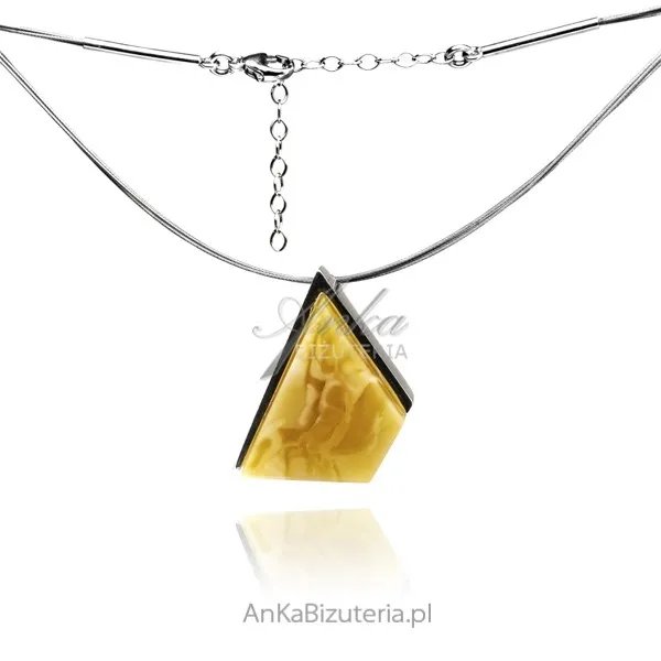 Elegancki srebrny naszyjnik z żółtym bursztynem