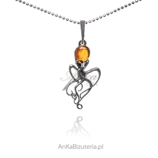 Biżuteria srebrna z bursztynem - zawieszka dumny kot
