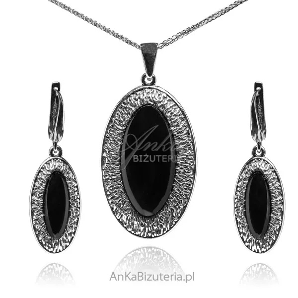 Biżuteria srebrna oksydowana komplet z czarnym onyksem