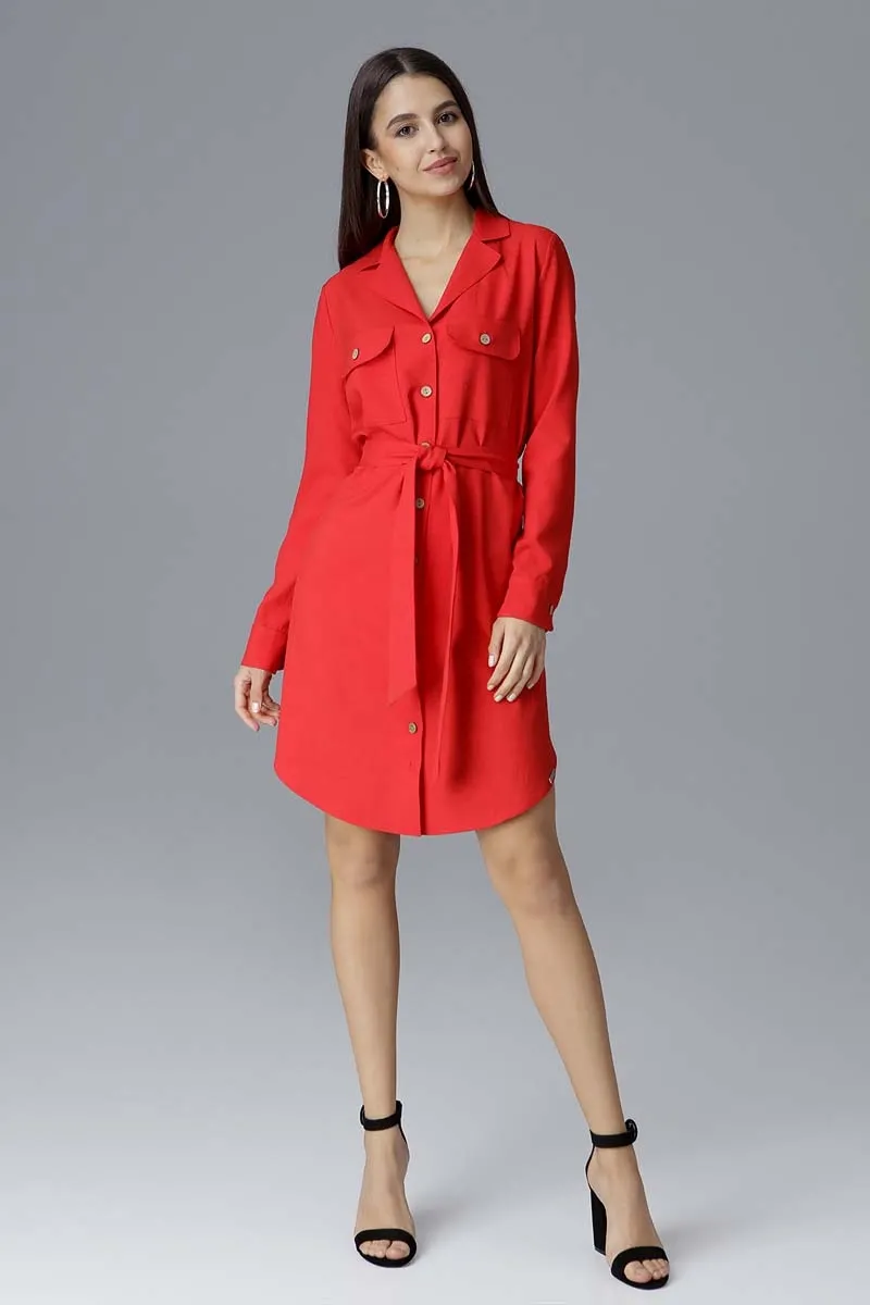Czerwona Koszulowa Sukienka z Wiązanym Paskiem