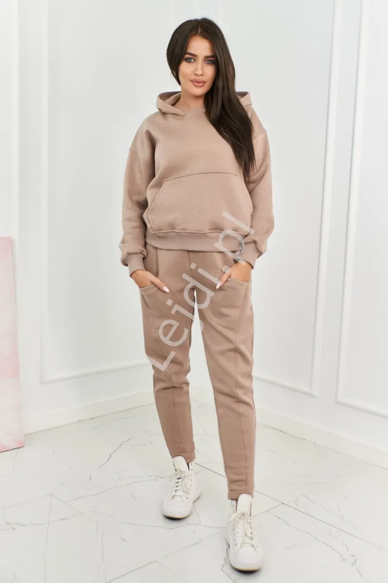 Grube dresy zimowe z kieszeniami beżowe 9577