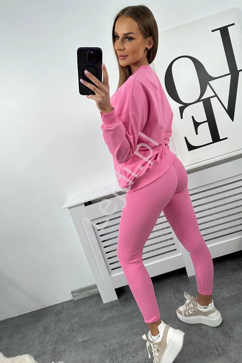 Różowy komplet damski bawełniany legginsy i bluza 9454